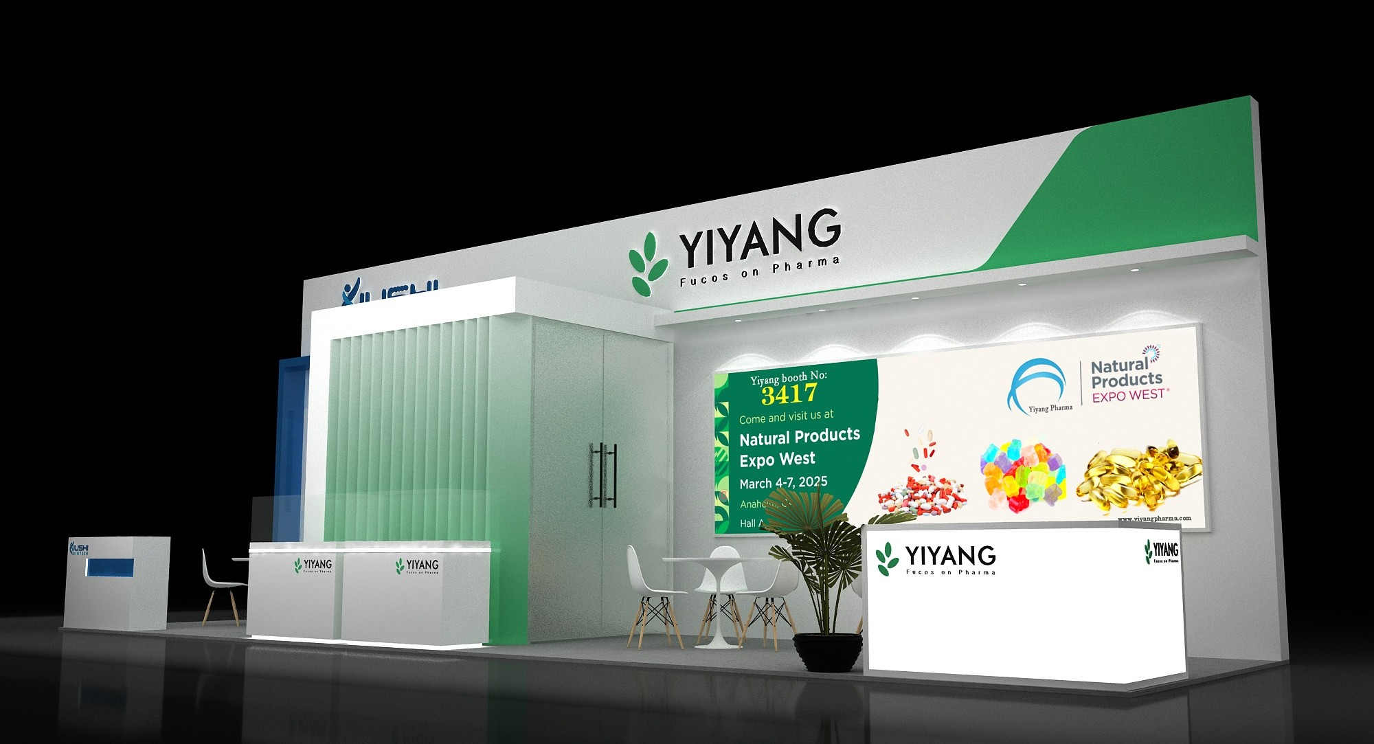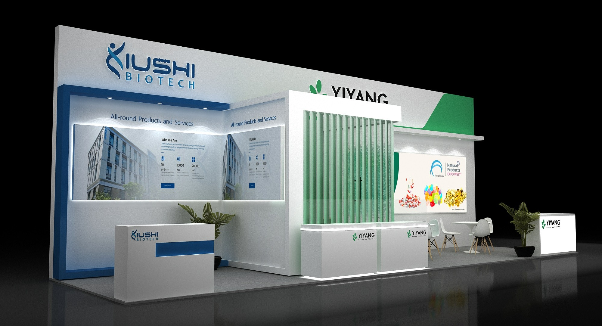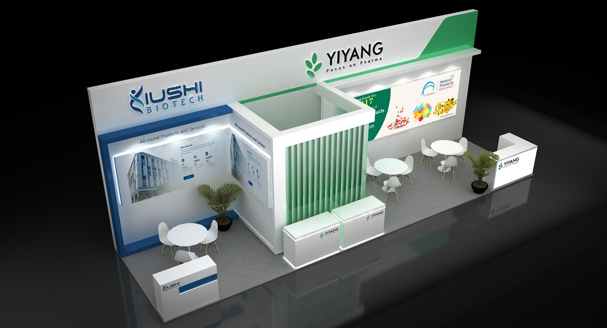 展位面積:3*11=33平方米 分開做兩家藥企做展臺設(shè)計 3*3和3*8